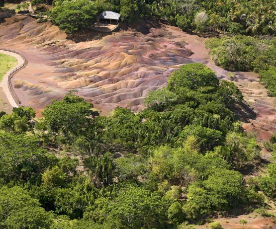 Déjeuner à la rhumerie de Chamarel, suivi d'une dégustation de rhum, de la visite des Terres des 7 Couleurs et des cascades de Chamarel.