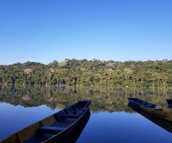 Transfert à l'embarcadère et départ en canot à moteur (env. 5h30) vers l'Eco-lodge Chalalán, en remontant les rivières Beni et Tuichi, dans la réserve naturelle de Madidi, qui offre une grande diversité de végétation et de faune. Arrivée au port et marche (env. 25 min.) le long d'un sentier dans la forêt pour atteindre le lodge. Installation, petite balade à pied et en pirogue, sortie nocturne.