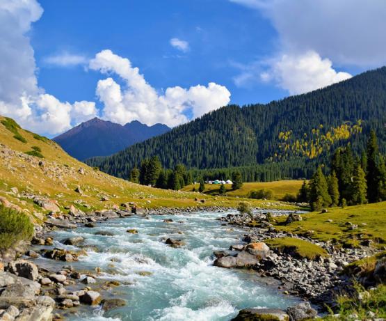 Ce matin, vous partirez de Bichkek et passerez 2 cols dans les montagnes kirghizes : Too Achouu et Alabel. Vous traverserez ensuite la magnifique vallée de Soussamyr, entre 2'000 et 2'500 mètres d’altitude, avec ses pâturages verdoyants et les yourtes des nomades installés ici pour l'été. En cours de route, arrêt dans un café pour le déjeuner. Continuation jusqu’au plus grand barrage du pays : le réservoir de Toktogoul. Vous pourrez faire une balade à pied au bord du lac artificiel, entouré de montagnes. Pour terminer cette journée, vous rejoindrez l’hôtel où vous mangerez avant de passer la nuit.