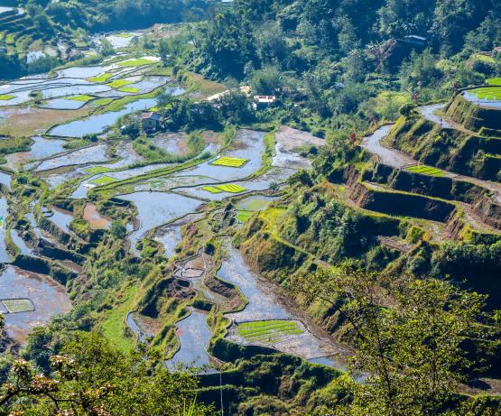 Départ en jeepney privé pour le village de Banga-an, au coeur du pays Ifugao. Visite à pied de ce village classé par l'Unesco. Possibilité de continuer jusqu'à Batad et ses rizières en amphithéâtre (1h de marche aller-retour). Retour à Banaue et découverte de son marché.