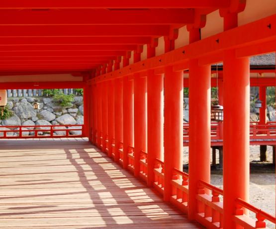 Transfert à la gare de Shin Osaka par vos moyens, et train Shikansen pour Hiroshima. Continuation en train local pour Miyajimaguchi, puis traversée de 10 minutes en ferry pour l'île de Miyajima. Visite libre du sanctuaire d'Itsukushima, bâti sur pilotis, en 593. En face, le torii en bois de camphre rouge, emblème sacré du sanctuaire, émerge des eaux. Visite du Senjô Kaku, bâtiment impressionnant situé sur la colline au-dessus du sanctuaire d'Itsukushima. Dîner et nuit dans un ryokan.