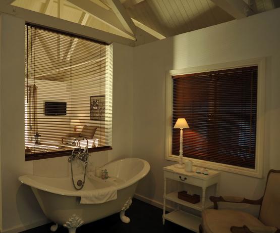 Suites Australes de 80 à 100m2, avec petit bassin pour les suites situées en rez de chaussée et avec bain à remous pour celles qui sont à l'étage. Les terrasses des suites sont à 2m de l'eau.