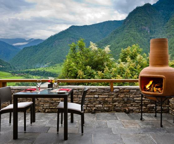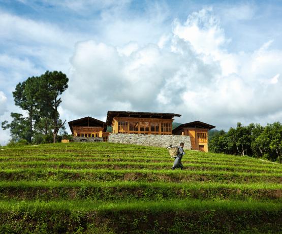 Niché au fin fond de la luxuriante vallée de Punakha, ce boutique-hôtel exclusif offre une retraite paisible et luxueuse à ses visiteurs. Son design minimaliste se fond parfaitement dans le panorama de cet endroit d'exception.