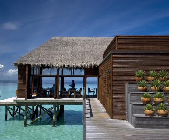 Observation des raies manta depuis le pont à fond de verre situé entre les 2 îles de l’hôtel (de novembre à avril). Plongée libre avec un requin-baleine, excursion sur une île déserte…2 luxueux spas (dont un sur pilotis) où sont utilisés entre autres les produits Valmont et Elemis. Quelques salles de soins à plancher de verre…