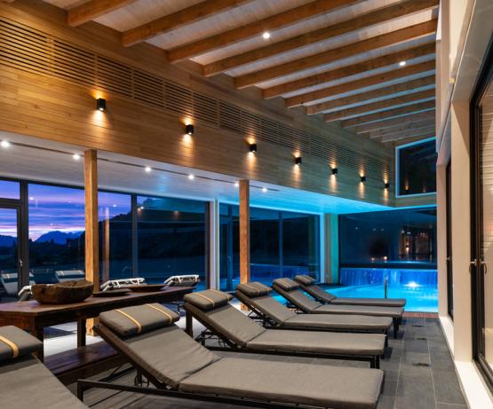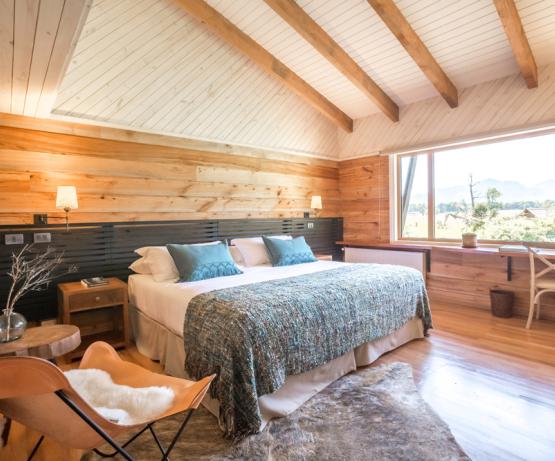 Installations : L’architecture de l’hôtel met en valeur le bois indigène de la région et la décoration utilise des tissus ethniques et des textiles colorés, inspirés d'artistes nationaux et d'objets de la culture mapuche. Dans cet esprit, l’hôtel dispose de 16 chambres confortables et chaleureuses (chambres supérieures de 26 m2 et suites de 35 m2). Le restaurant met en avant la cuisine locale. Le spa de 450 m² (piscine intérieure chauffée, piscine extérieure semi-olympique, sauna, salle de massages) offre une vue imprenable sur les montagnes environnantes.