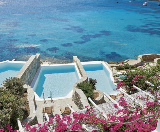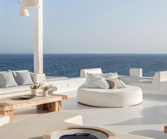 Une icône des Cyclades sur la plage la plus célèbre de l'île. À Psarou, l'air est luxueux et mystifiant. Mykonos Blu contemple la mer Égée et les superyachts. Méticuleusement rénové, avec son architecture typique des Cyclades, c'est l'endroit parfait pour se retrouver et contempler la vue.