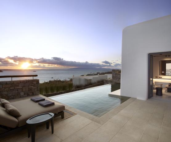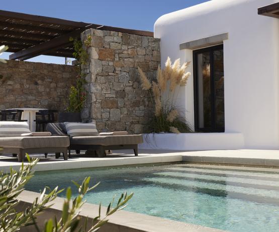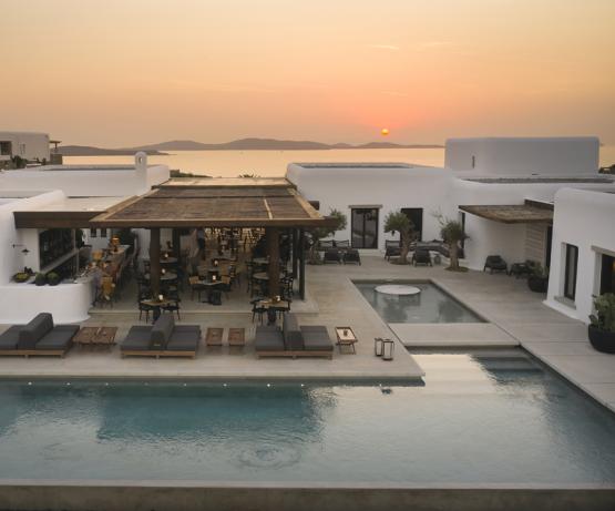 Kalesma Mykonos est un sanctuaire contemporain niché sur la colline d'Aleomandra, entre la baie d'Ornos et Agios. Il offre un haut niveau d'intimité parmi ses suites et villas de luxe, toutes dotées de terrasses privées et de piscines à débordement chauffées. Idéalement proche de certaines des plages et attractions les plus renommées de l'île, mais suffisamment isolée pour offrir sérénité et le sentiment d'un quartier mykonien authentique, Kalesma ressemble à un village insulaire traditionnel mêlant l'ambiance locale à la haute esthétique.