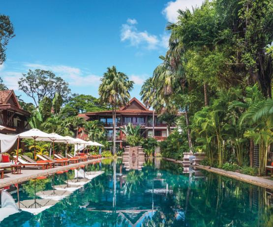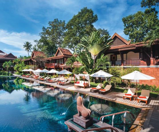 En plein centre de Siem Reap, idéalement situé en bordure de la rivière, ce resort de charme propose une architecture typiquement khmère où le bois est omniprésent. 59 suites, 2 restaurants, un bar lounge, une piscine d'eau de mer et de magnifiques jardins tropicaux font de ce resort le point de chute idéale pour ceux qui souhaitent rester proche du centre-ville tout en profitant du calme et de la tranquillité de ce lieu d'exception.