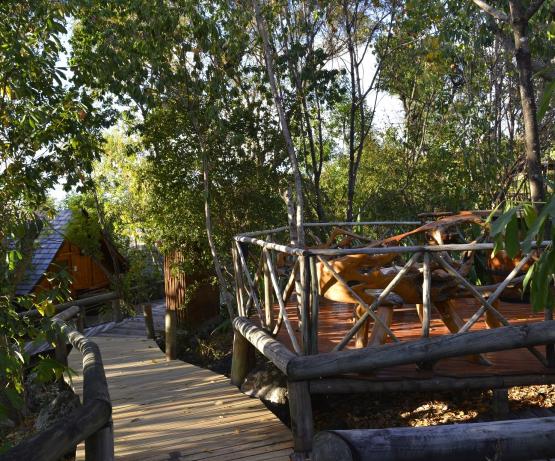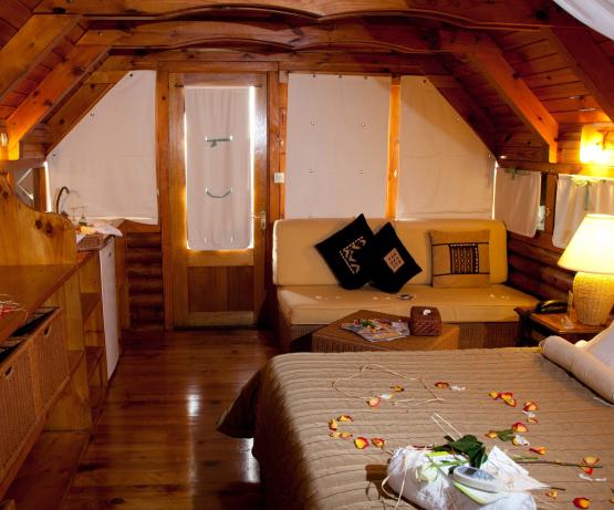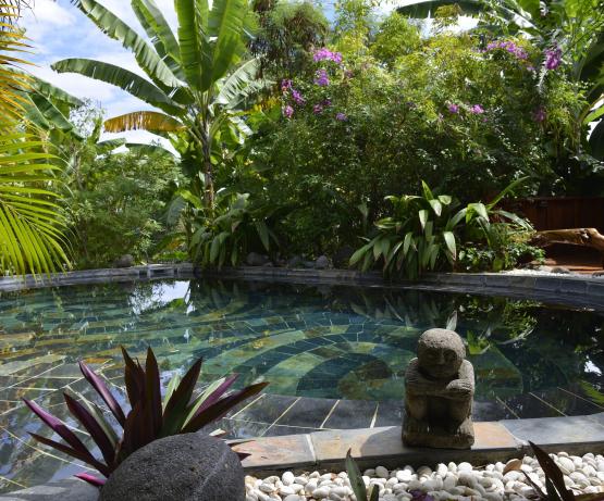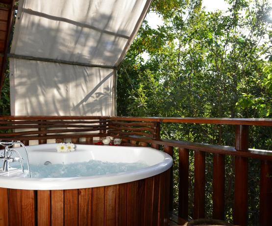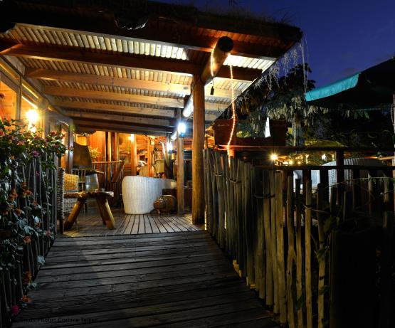 Lodge situé à la Possession, au nord de l'île, idéal pour aborder la découverte de la Réunion et s'imprégner de la nature luxuriante environnante. Ce petit joyau est niché dans la végétation, au coeur d'un domaine tropical de 15000 m2, et il propose des lodges en bois tout confort, certains avec jacuzzi sur la terrasse au milieu des arbres. Chaque lodge est décoré de façon très raffinée. Profitez du petit spa, notamment le bain à remous en fût de bois...