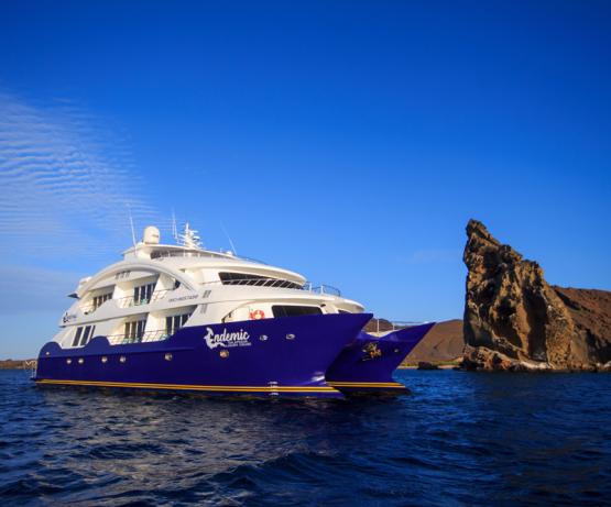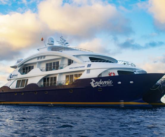 Construit en 2018, le M/C Endemic est un catamaran de luxe. Le bateau peut accueillir jusqu’à 16 passagers. Il offre 8 cabines « Golden Suite » (env. 32 m2, balcon inclus) et 1 cabine à usage individuel (env. 14 m2, balcon inclus). Toutes les cabines disposent d’un balcon privé, de fenêtres panoramiques, d’un petit canapé, d’un bureau, de salle de bain privée (avec douche et sèche-cheveux), de la climatisation et d’un coffre-fort. Grande pièce combinant salle à manger et coin salon avec bar, salon pour les présentations avec petite bibliothèque et vidéothèque, terrasse couverte, petite terrasse isolée sur le pont supérieur à l’avant du bateau, grand sundeck avec bar, jacuzzi et chaises longues. Des conférences sont proposées à bord. Un guide par maximum 10 passagers est prévu pour les visites. Les enfants sont acceptés à bord dès 7 ans.