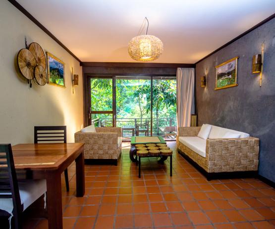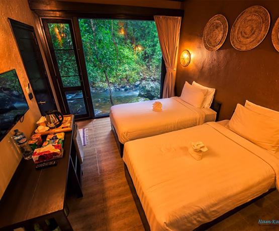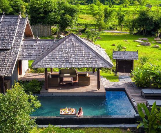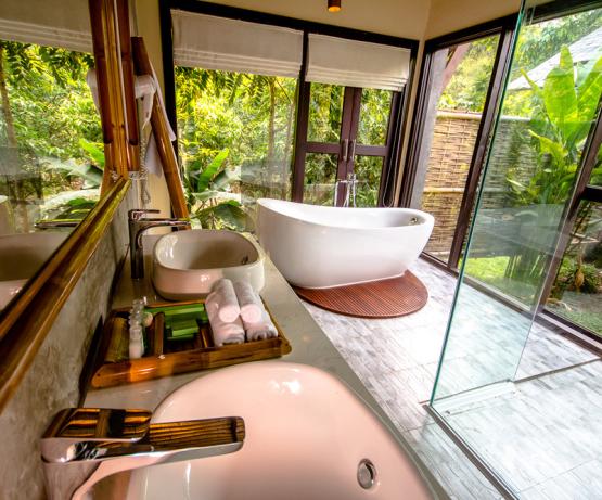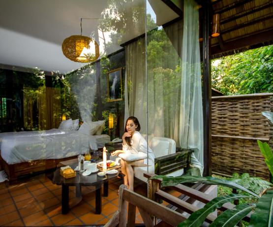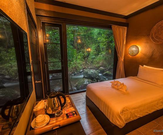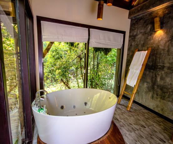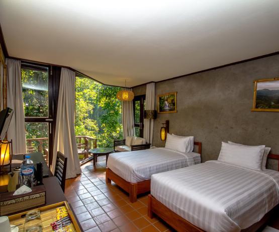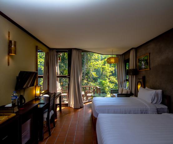 Perdu au beau milieu d'une forêt tropicale luxuriante se cache ce magnifique resort, combinaison parfaite de beauté naturelle, d'architecture laotienne et de confort moderne. Emplacement idéal pour les voyageurs en quête de nature sauvage, le resort vous offre une infinité d'activités en plein air : petite randonnée, trekking, rencontres avec l'ethnie Khmu, baignade dans les cascades, tyrolienne, balades à vélo... pour n'en citer que quelques unes.