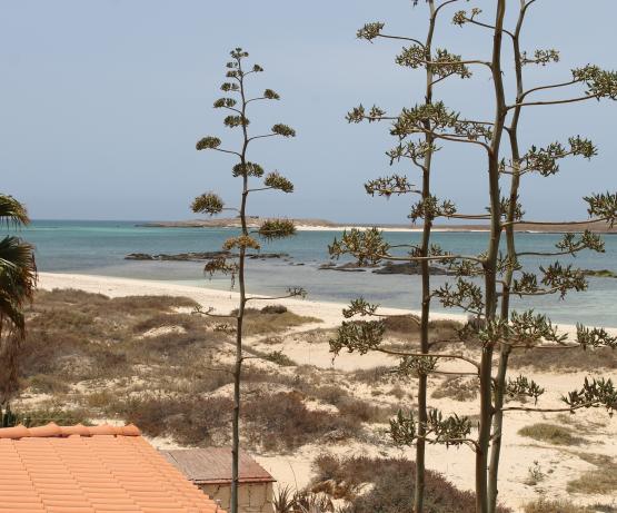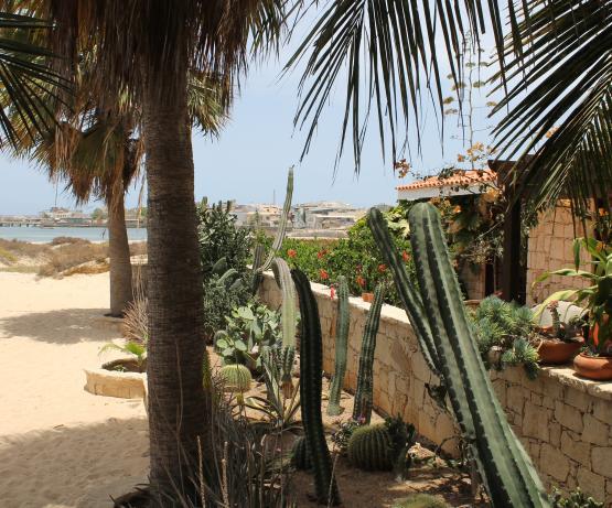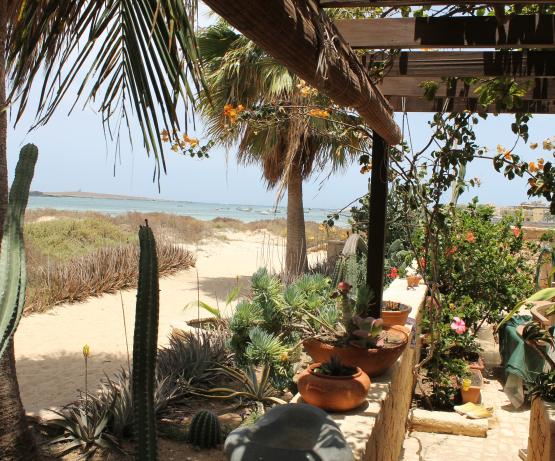 Petit hôtel de charme, convivial et familial, situé en bord de plage, près du village de Sal Rei. Vous serez accueilli dans un petit écrin de verdure par les oiseaux des propriétaires. Vous prendrez votre petit déjeuner sur la terrasse entourée de palmiers, de bananiers et autres plantes exotiques. La plage, les restaurants et l'animation de Sal Rei sont à proximité, à 1 min à pied. Hôtel idéal pour profiter de la mer moins agitée à cet endroit et pour partir en excursions à la découverte de Boavista.