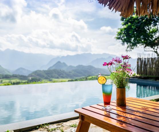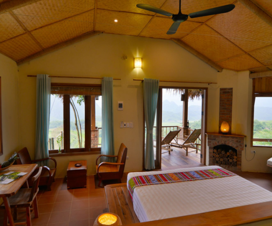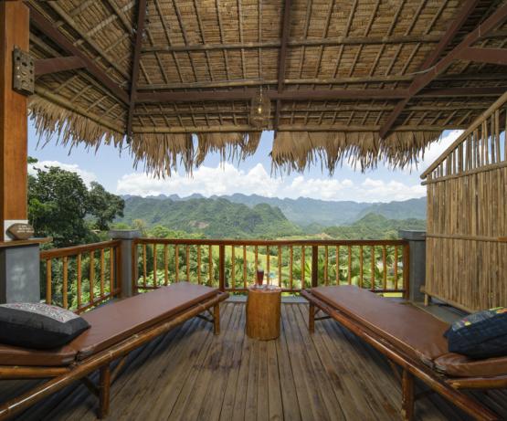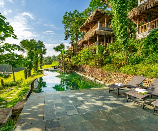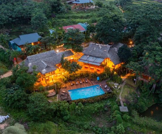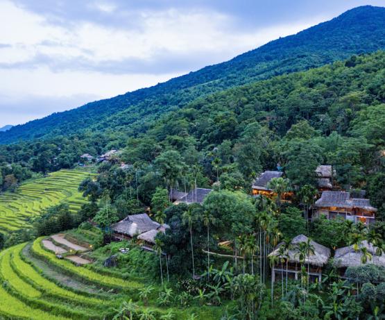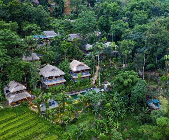 Pu Luong Retreat est véritablement une évasion verte et paisible. S'étendant sur 400 m à flanc de colline, l’hôtel vous offre des maisons traditionnelles, des vues splendides, des potagers et de vieux palmiers, jacquiers et pamplemousses. Leurs 31 bungalows avec vue panoramique époustouflante sur les rizières en terrasse, les vallées et les superbes montagnes, 2 piscines, restaurants en plein air aux cuisines asiatiques authentiques, centre de massage et de yoga, tout est à votre disposition pour vous évader.