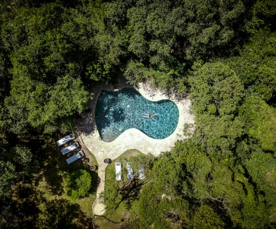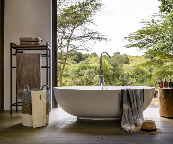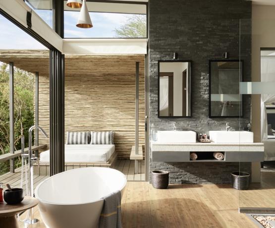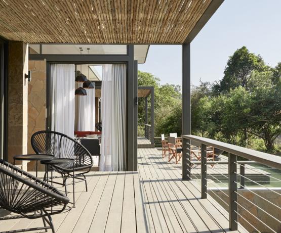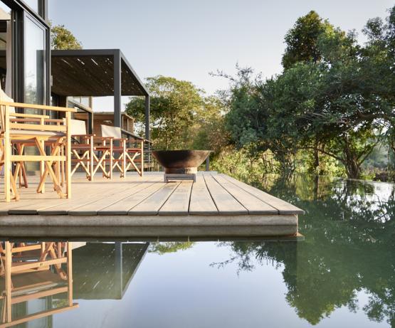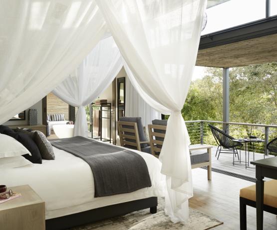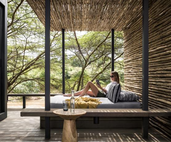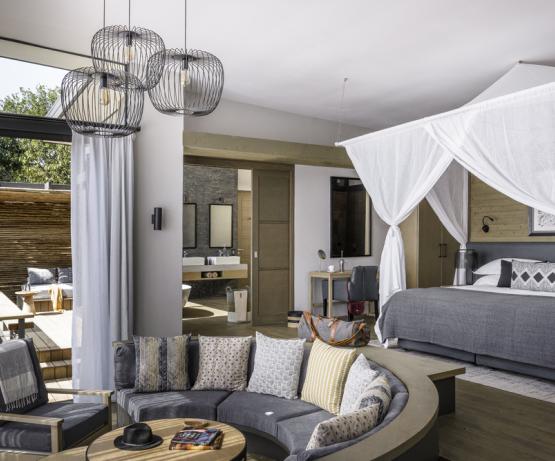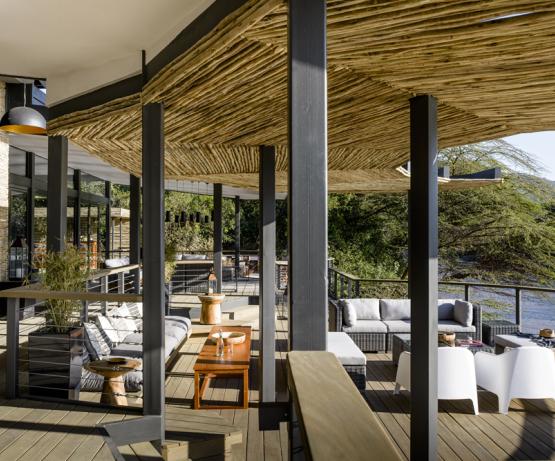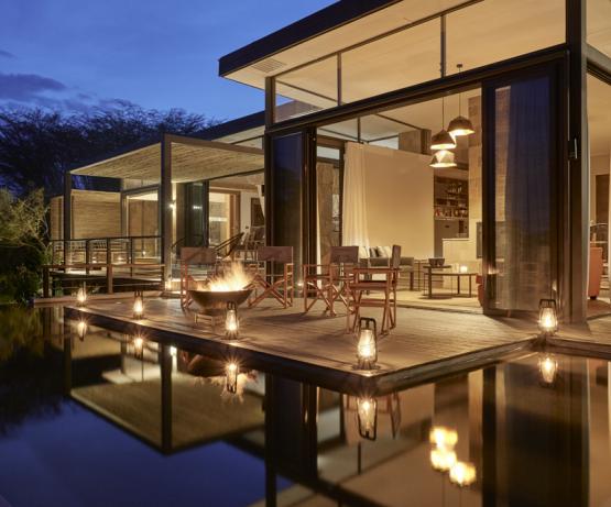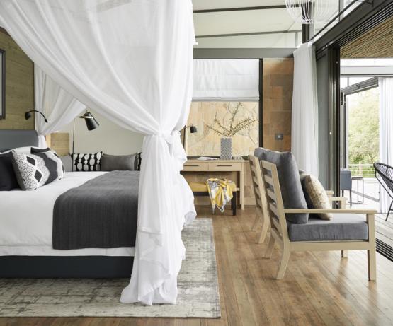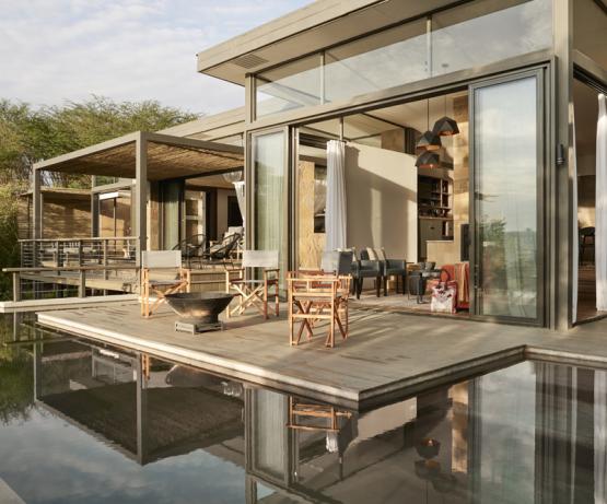 Architecture moderne et style traditionnel se côtoient et complètent dans ce luxueux établissement qui propose 14 spacieuses suites disposant de ventilateurs, terrasses, vastes salons et qui, surtout, sont entièrement vitrées, permettant ainsi une inimaginable observation des merveilles qui vous entourent. Une nouvelle suite avec trois chambres, piscine à débordement, salon et salle à manger, bar, chef privé et véhicule de safari privé est depuis peu proposée dans une aile séparée du Lodge.