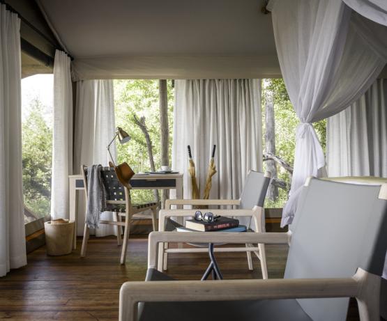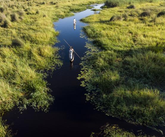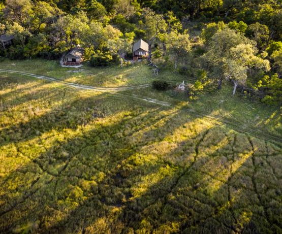 Niché au coeur d’une concession privée aux abords de la réserve de Moremi, ce