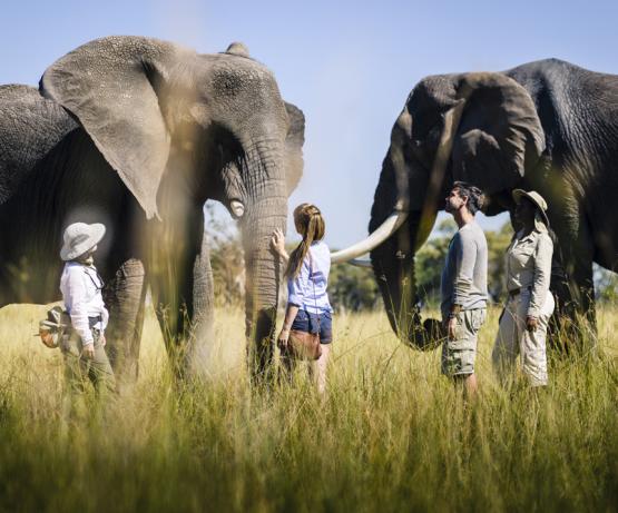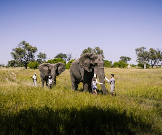 en mokoro, rencontres avec les éléphants, survol du delta en hélicoptère.
