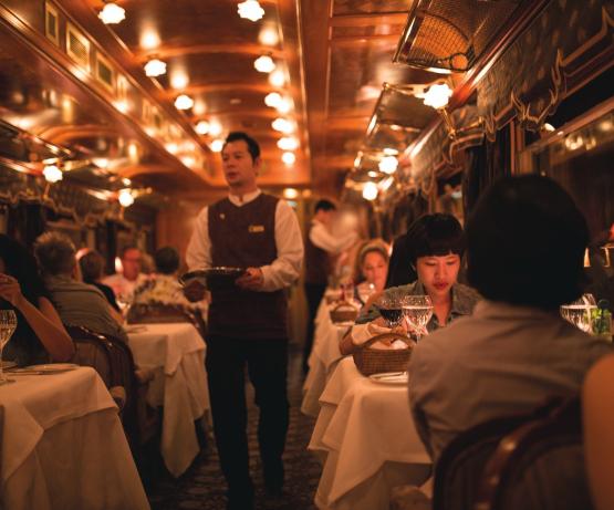 Installée à l'arrière du train, la voiture observatoire de style colonial vous accueille la journée pour observer les paysages qui défilent et en soirée pour déguster de délicieux cocktails et vous divertir. Une partie de la voiture est ouverte sur l'extérieur afin de réaliser de magnifiques photos au fil du voyage.
