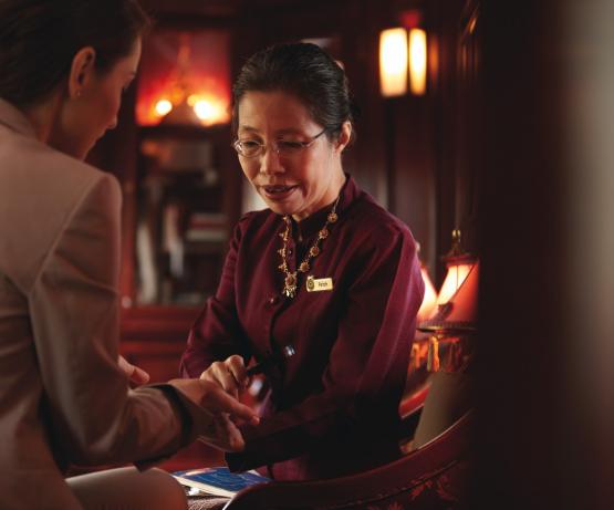 Partagez votre expérience avec les autres passagers autour d'un cocktail ou d'un dîner. Rencontrez des figures locales lors d'excursions passionnantes, du doyen du village à l'œnologue expert en passant par le dresseur d'éléphants.