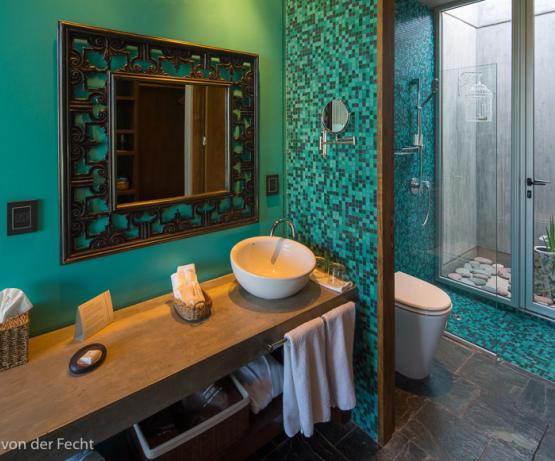 Installations : 16 chambres et suites (plusieurs catégories), toutes décorées de manière différente, disposant de tout le confort (terrasse, TV, minibar, coffre-fort?) et donnant sur le jardin. Piscine et jacuzzi extérieurs, espace hammam et spa exceptionnel, solarium, terrasse, 2 restaurants (cuisine gourmet), bar.