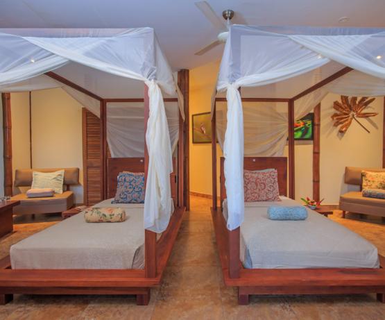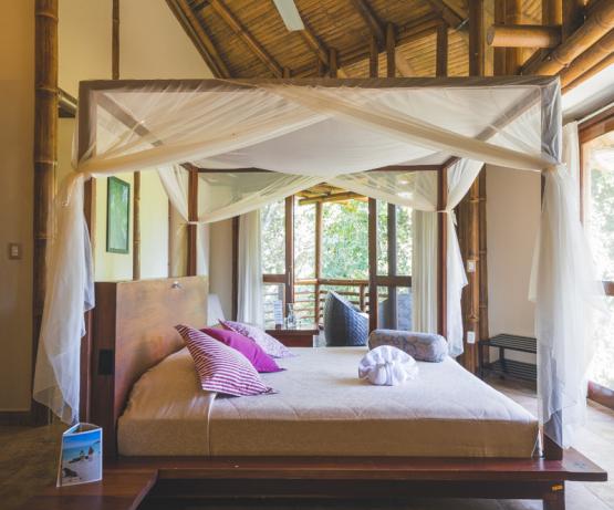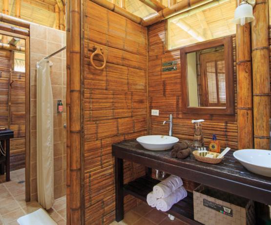 Installations: 19 grandes suites (37 m2) avec salle de bains privée, eau chaude, électricité et balcon privé avec hamacs. Restaurant, bar.