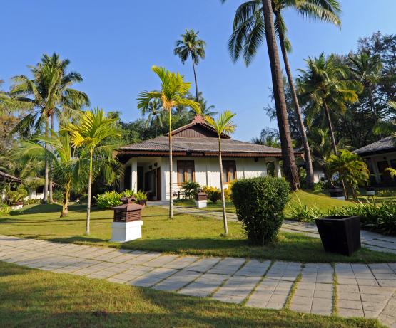 38 bungalows disséminés sur la plage de Ngapali dans un écrin de verdure.