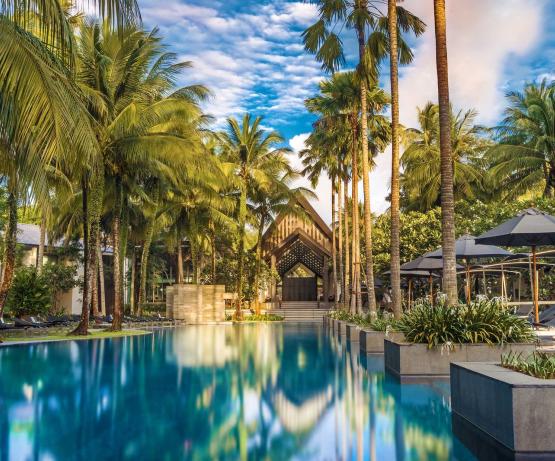 Situé à 150 mètres de la plage de Surin. Les chambres sont nichées dans une palmeraie mais toujours avec une vue partielle ou entière sur la baie. Mélange d'architecture thaïe et européenne, ce « Small Luxury Hotel » est la parfaite combinaison du luxe et de la quiétude. 97 chambres, 2 restaurants dont le très bon « Oriental Spoon », piscine et spa.