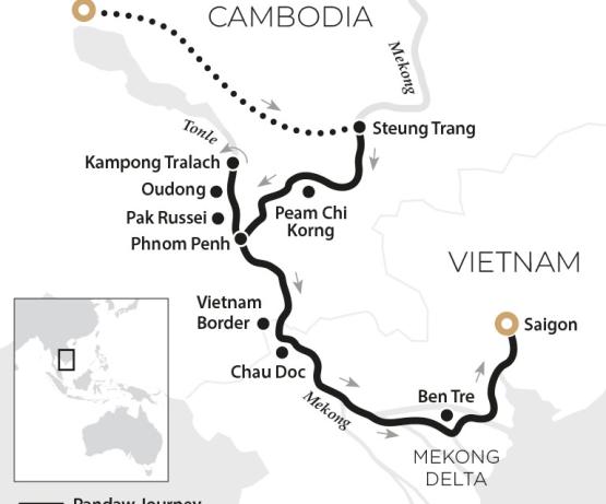Tôt le matin, vous remonterez les canaux sinueux de la rivière Tonle Sap jusqu'à Kampong Tralach. Vous vous déplacerez en charrette à bœufs autour des villages, des marchés et des temples qui bordent la rivière, afin de vous faire une idée de la vie dans le Cambodge rural. Le soir, des cocktails sont servis autour d'un feu dans un petit village de pêcheurs où vous serez rejoints par des villageois désireux de vous raconter des histoires et de vous montrer leurs danses traditionnelles.
