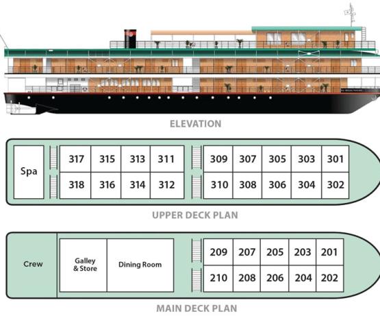 - 10 cabines sur le pont principal et 18 cabines sur le pont supérieur,