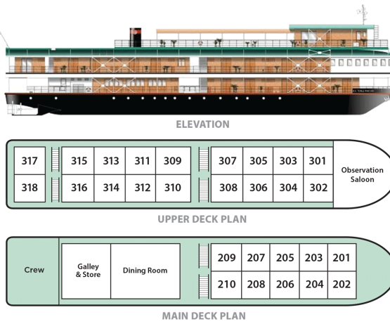 - 10 cabines sur le pont principal et 18 cabines sur le pont supérieur,