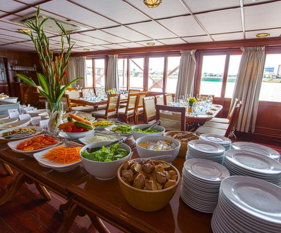 Modélisé d'après le Pandaw II et appelé à l'origine Pandaw III, le Tonle a servi pendant un an en Birmanie en 2002-2003 avant d'être remorqué sur le Mékong où il assure depuis lors un service continu entre Saigon et Kampong Cham. Avec son magnifique salon sur le pont supérieur, ses ponts d'observation et sa salle à manger, ce navire possède une riche ambiance. En 2013, il a été entièrement réaménagé et le nombre de cabines a été réduit à seulement vingt-huit afin de créer un spa et une bibliothèque sur le pont inférieur. Ce n'est pas un petit navire, mais malgré sa taille, il a un faible tirant d'eau et peut généralement remonter la rivière dans les zones de basses eaux lorsque d'autres navires sont bloqués bien en dessous. Le navire dispose de VTT de qualité pour votre exploration indépendante.