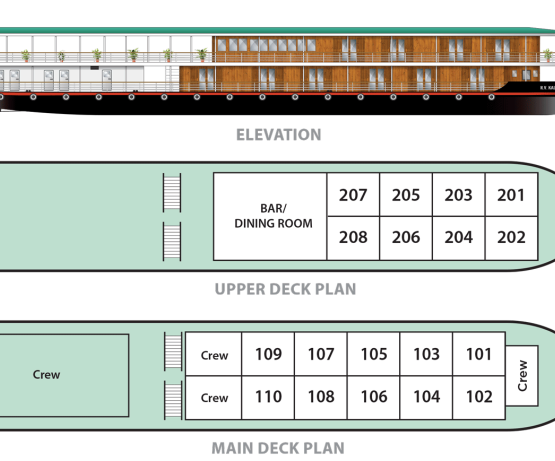- 10 cabines sur le pont principal et 8 cabines sur le pont supérieur,
