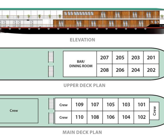 - 10 cabines sur le pont principal et 8 cabines sur le pont supérieur,