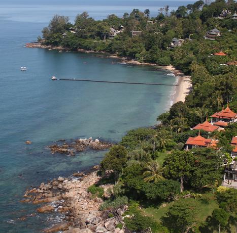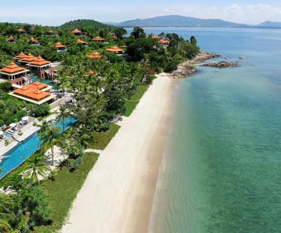 À Trisara, du sanskrit "le jardin au troisième ciel", on vit des vacances très spéciales. Nichées dans une forêt tropicale et des jardins exotiques se trouvent les 60 villas spacieuses avec piscine et vue sur la mer ainsi que les résidences privées de 2 à 6 chambres. La baie est orientée au nord-ouest et le resort n'est qu'à 15 minutes de l'aéroport de Phuket.