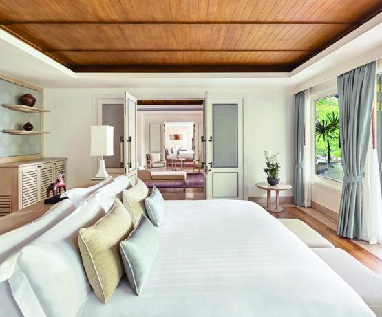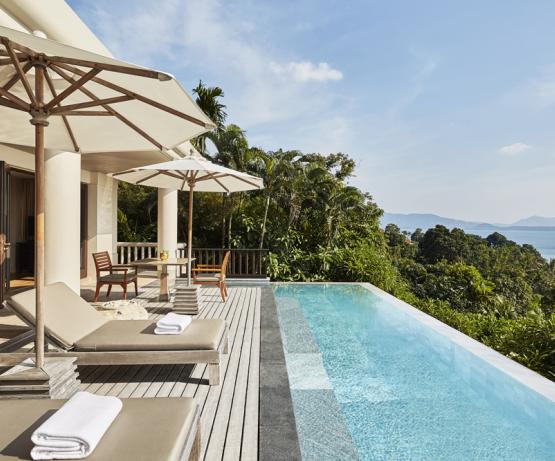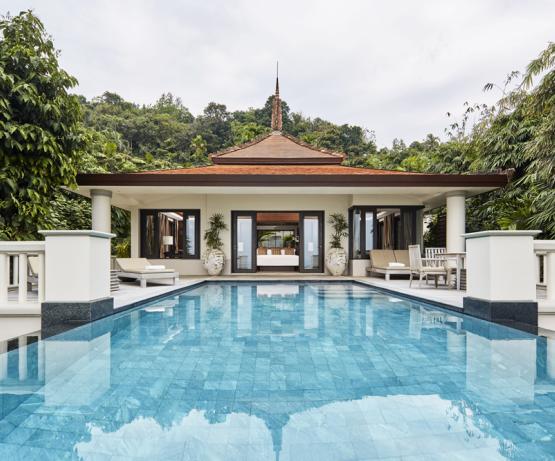 Les villas avec piscine sont situées à l'ombre des vieux arbres. En plus d'une intimité totale, elles offrent une vue magnifique sur l'océan et ne sont qu'à une courte distance de marche des restaurants et des autres installations de l'hôtel. On a l'impression d'être étreint par la nature lorsqu'on se retire dans les suites et villas avec piscine de Trisara. Les villas spacieuses aménagées dans le style thaïlandais sont bien pensées et aucun détail n'a été oublié. Chez soi, dans sa villa, on a le sentiment d'une intimité et d'une sécurité absolues, avec une vue spectaculaire sur la mer d'Andaman et les couchers de soleil.